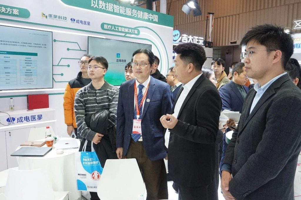 展会期间,中国卫生信息与健康医疗大数据学会副会长胡建平、四川省卫生信息学会第五届理事会会长廖斌、四川省卫生信息学会第四届理事会会长郑小华等行业领导莅临医星展位参观指导,医星团队热情接待并详细介绍了核心产品体系、智慧医疗解决方案及标杆案例落地成效。在案例分享环节,团队以江都区、昌宁县紧密型医共体建设为两大典型样本,生动还原了医星智慧区域卫生解决方案的实践成果。领导们对医星的技术创新能力及案例实践成效给予高度认可。